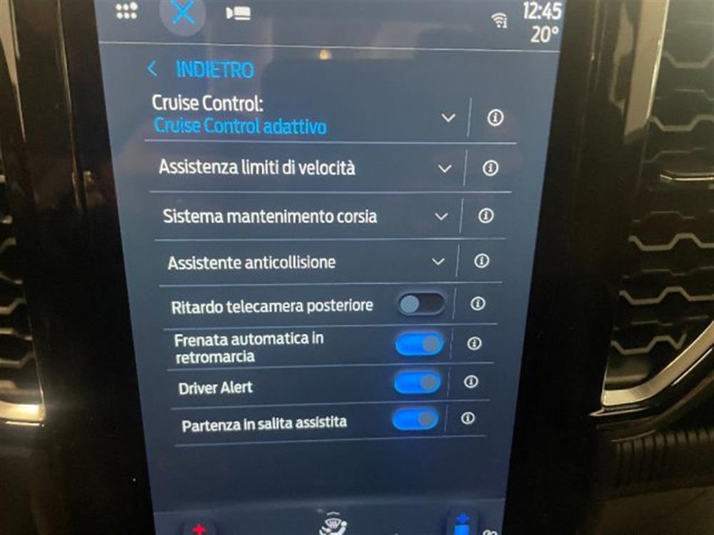 cruise control, abs, climatizzatore, airbag, airbag passeggero, chiusura centralizzata, immobilizzatore elettronico, controllo trazione, fendinebbia, servosterzo, autoradio, esp, bluetooth, autoradio digitale, telecamera per parcheggio assistito, sensore di pioggia, sensore di luce, sensori di parcheggio posteriori, specchietti laterali elettrici, adaptive cruise control, airbag testa, riconoscimento dei segnali stradali, frenata d'emergenza assistita, cerchi in lega da 16', copertura cassone roller, feature pack a, gradino posteriore, vernice metalizzata, sync 4 display da 10'' (radio -dab-bluethoot-usb)