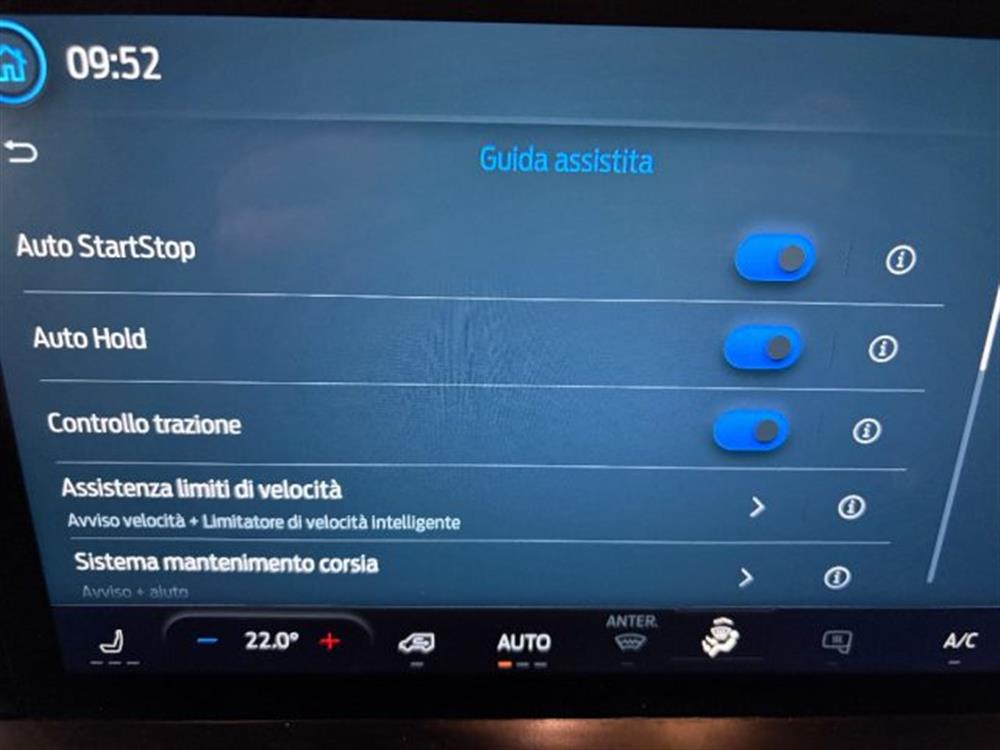 cruise control, abs, controllo automatico clima, airbag, airbag passeggero, chiusura centralizzata, controllo trazione, servosterzo, autoradio, esp, bluetooth, autoradio digitale, sensore di pioggia, sistema di riconoscimento della stanchezza, specchietti laterali elettrici, fari led, bracciolo, adaptive cruise control, riconoscimento dei segnali stradali, controllo elettronico della corsia, frenata d'emergenza assistita, apple carplay, android auto, seat pack 8a, sensori parch. ant. e post., sync4 schermo touch da 13'', telecamera posteriore, cerchi in lega da 16', cronologia tagliandi, retr. ripeg. elettric., ruota di scorta